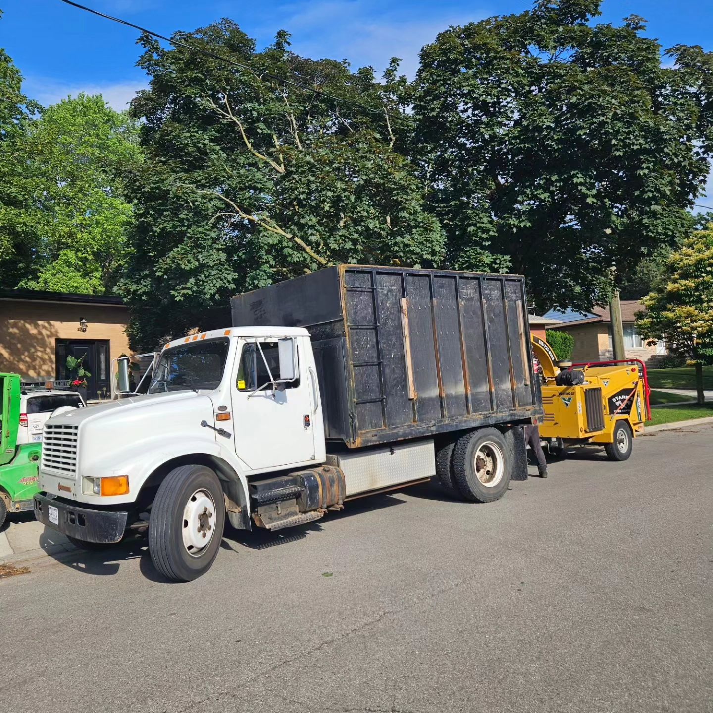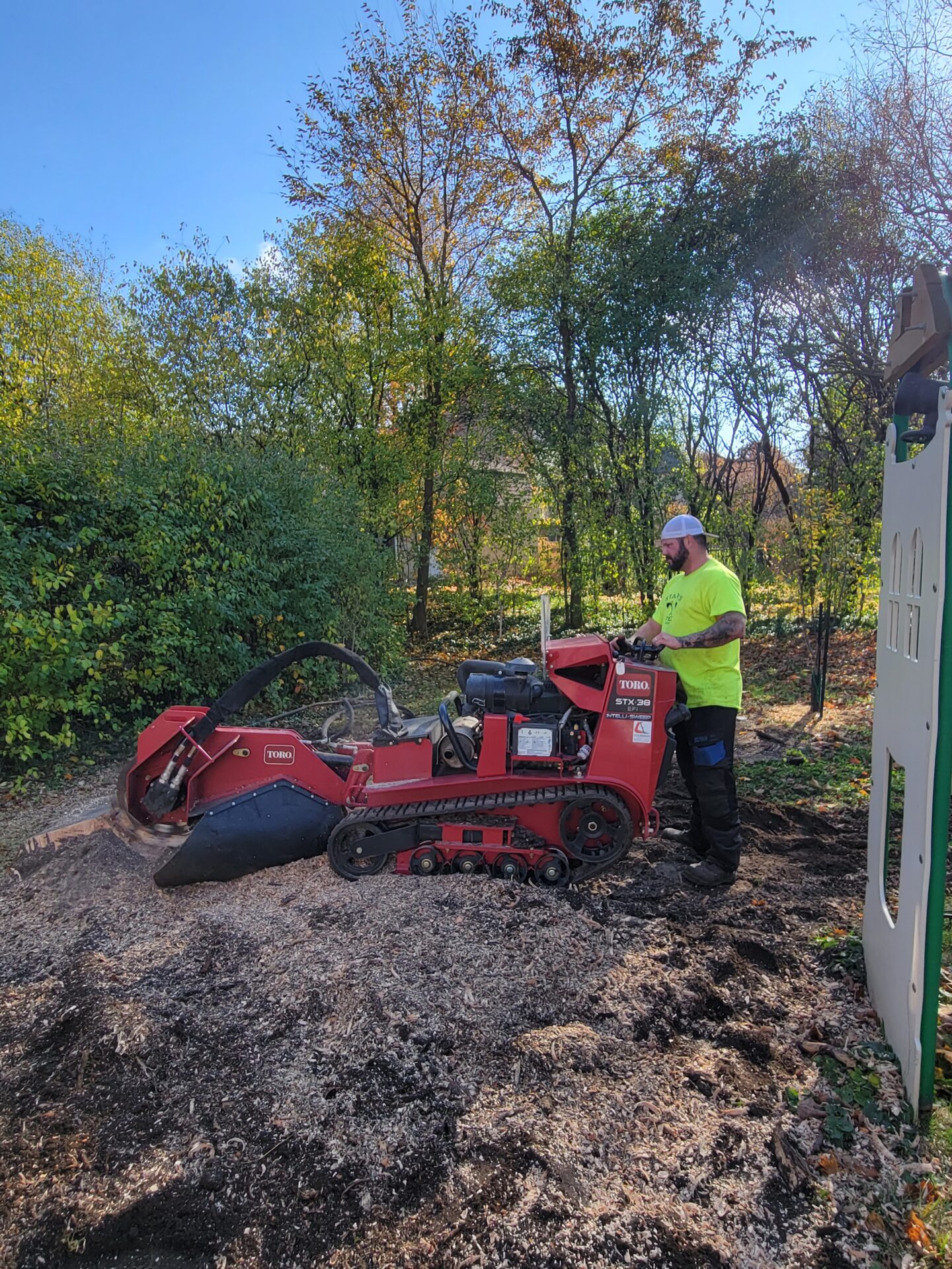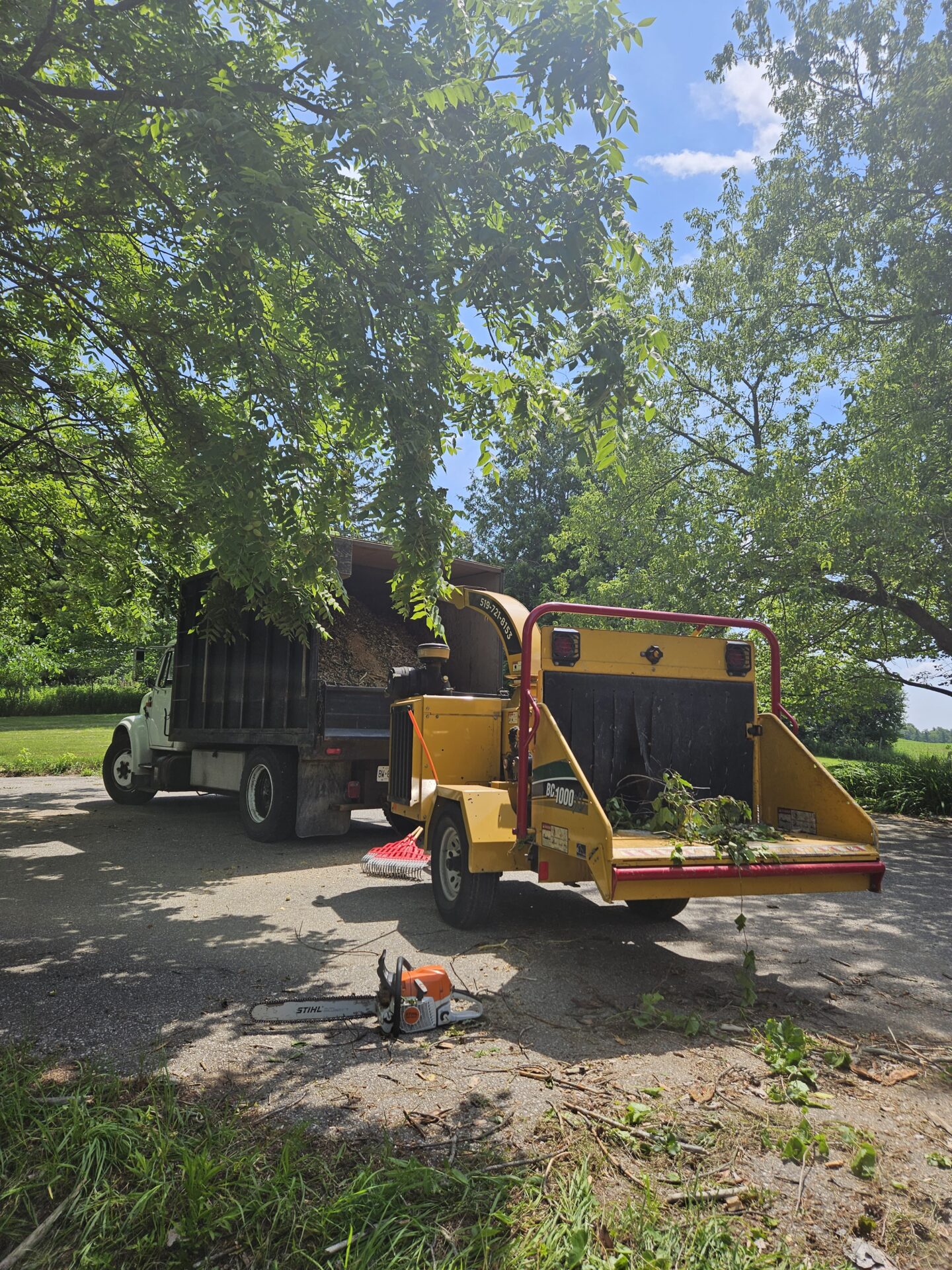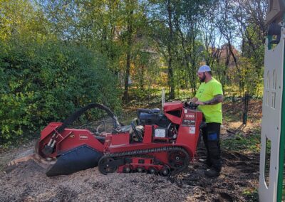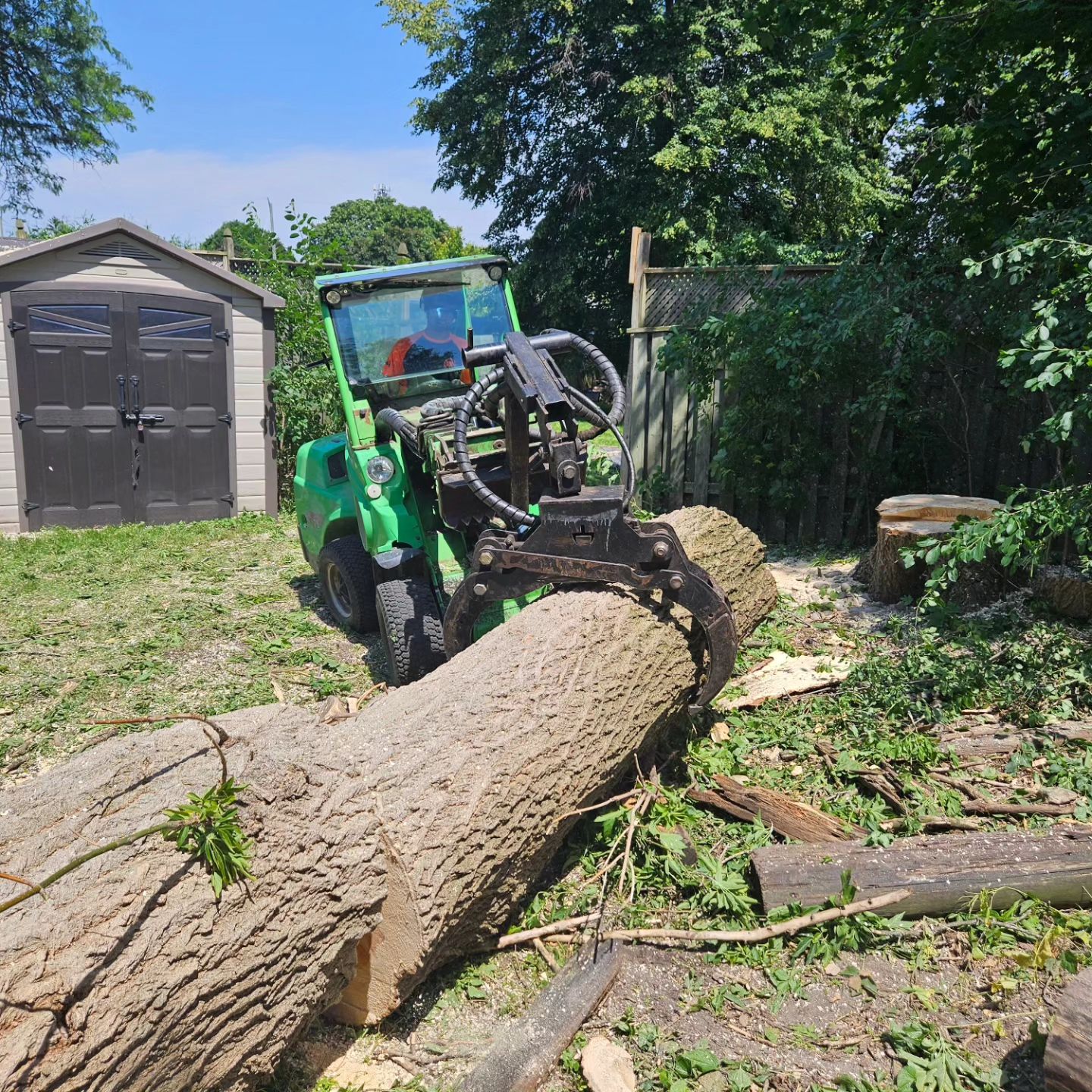 Cory climbed that tree, spurs on to the top as we all stood by totally amazed!! He started looping off branches with the trusty chainsaw and brought that broken tree down safely in no time at all. Half of that 80 foot tree had split and fallen barely missing the house after the big storm. Very efficient team! Great company !!
